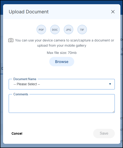 Why can't I attach a document to a message? January 16, 2026 17:21 Updated Documents must be uploaded separately from messages. To upload a document, use the Documents tab.