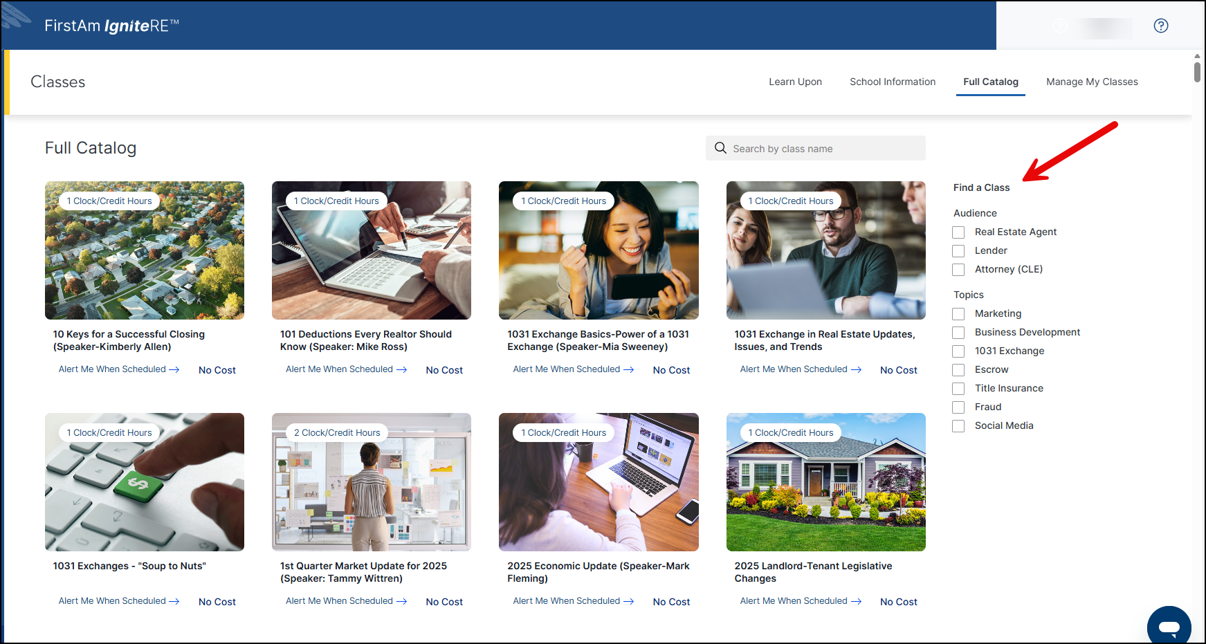 The full Classes catalog includes relevant, industry-specific courses available in your state and can be filtered by audience and topic to help you find the class you’re looking for. You can also set up alerts to be notified when new classes are added.