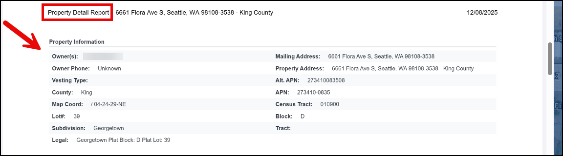 Yes. Select Property Detail to view a snapshot of the owner and property information. Please note that personal contact information, such as phone numbers and email addresses, is not included.