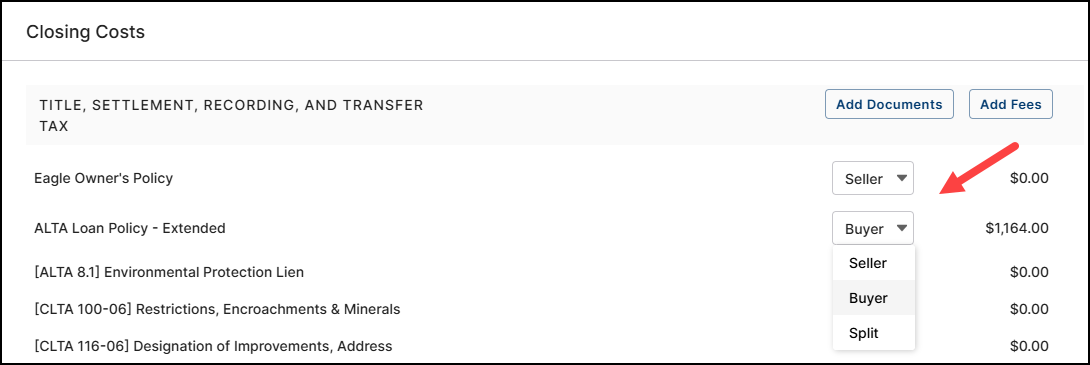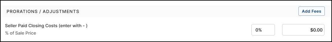 You can also add a lump-sum under Prorations/Adjustments. This amount can be entered either as a percentage of the sales price or as a flat dollar amount.